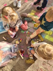 W salach / na ogrodzie pojawiają się propozycje zajęć dostosowane do energii i potrzeb dzieci o tej porze dnia. To czas na eksperymentowanie i rozwijanie nowych zainteresowań.Zabawa swobodna i odbiór
