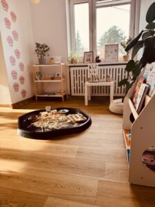 Jestem bardzo zadowolona że mój synek trafił właśnie w takie miejsce. Nie ma ono wiele wspólnego z tradycyjnym żłobkiem czy przedszkolem. Tutaj dziecko otoczone jest non stop uwagą, troską, przytulasami i domową atmosferą. Nie ma plastikowych głośnych zabawek. Dominuje to co naturalne oraz niesamowita kreatywność opiekunek w wymyślaniu nowych zajęć i zabaw rozwijających zmysły dzieci.